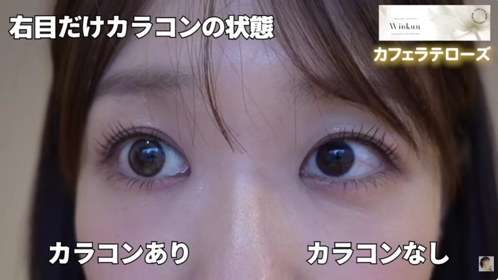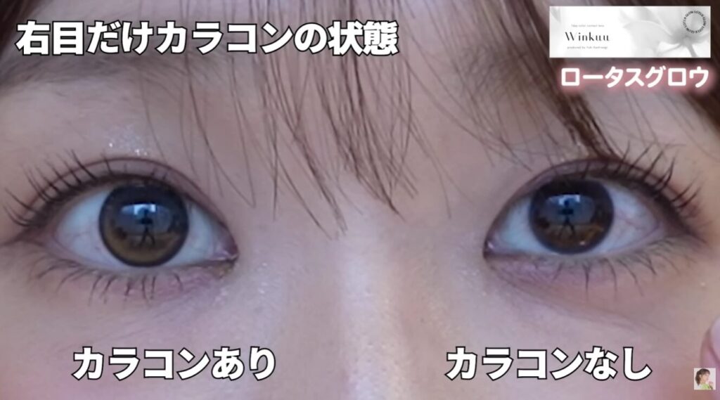 出典:YouTubeチャンネル「ゆきりんワールド」 動画タイトル:【カラコン】柏木由紀プロデュースカラコンWinkuu全色レビューします!